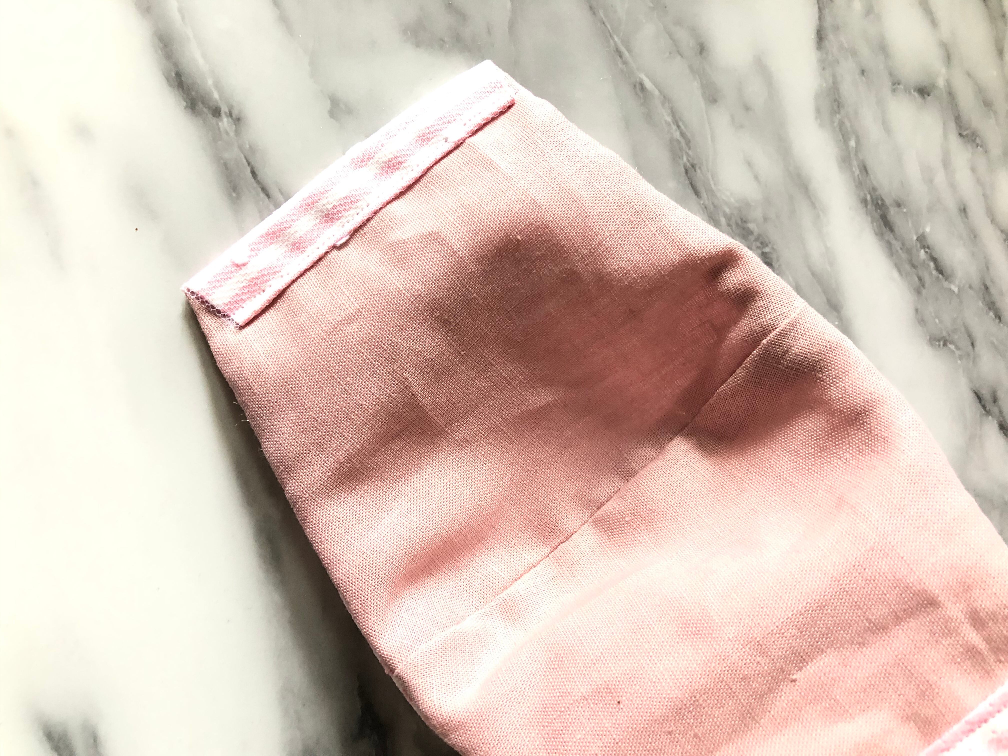 水色ストライプとベージュストライプはピンクストライプより表面生地が若干薄いので、水色とベージュに限り裏面生地を二重にしております。
