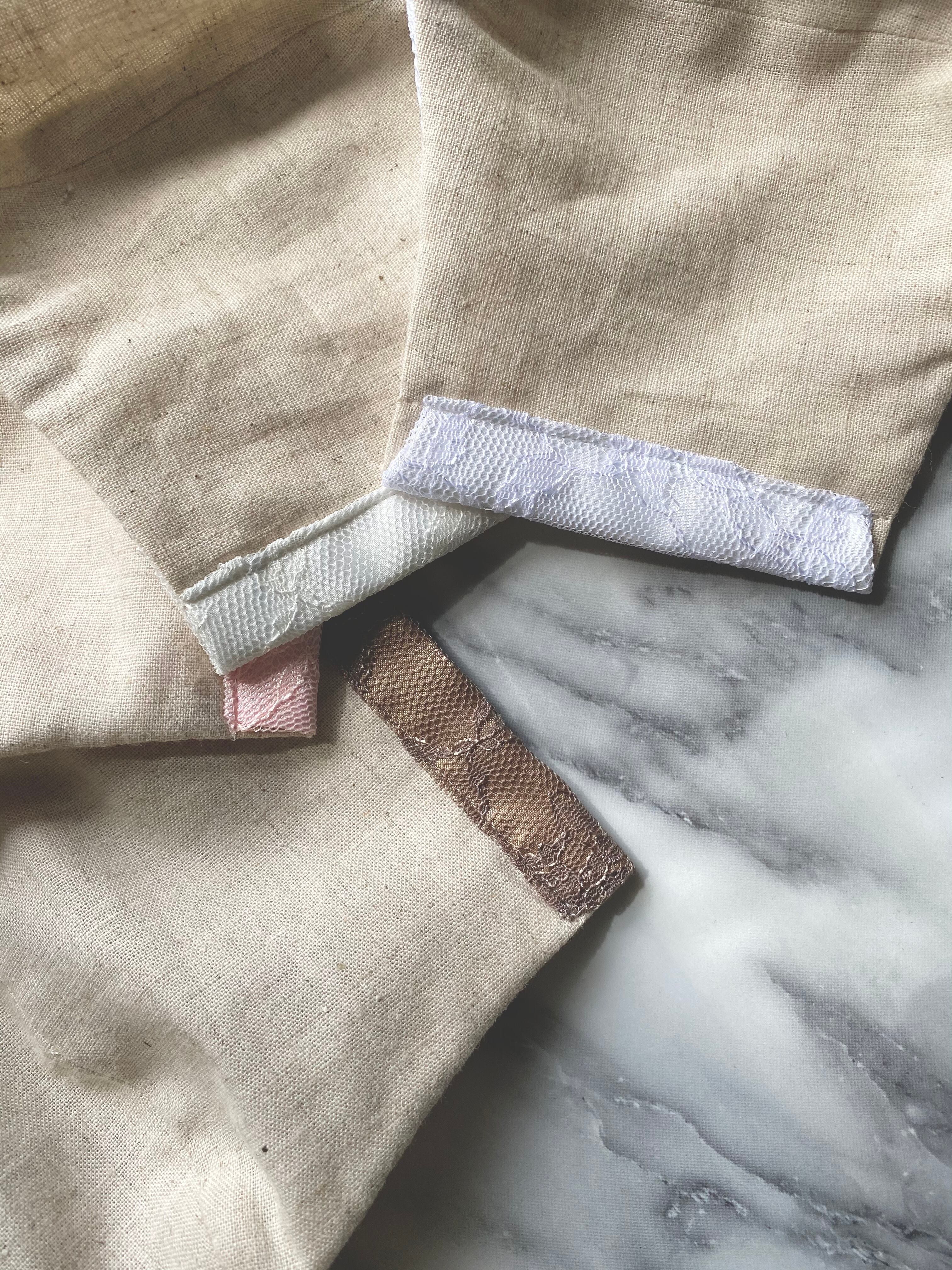 裏地のシワが気になる場合は必ず裏面から低温でアイロンをお願い致します。高温でレース部分に触れると溶ける原因になりますのでご注意ください。