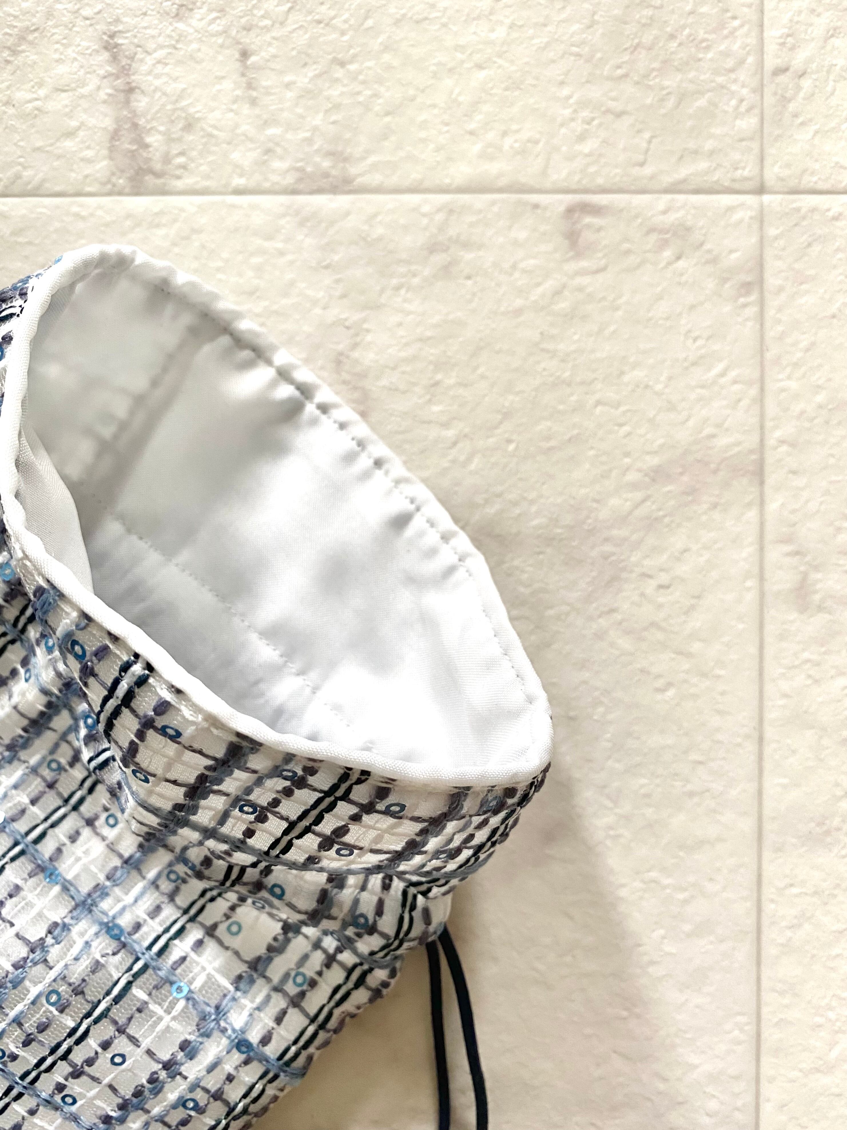 表地1:ブルー、ホワイト、グレーツイード糸刺繍