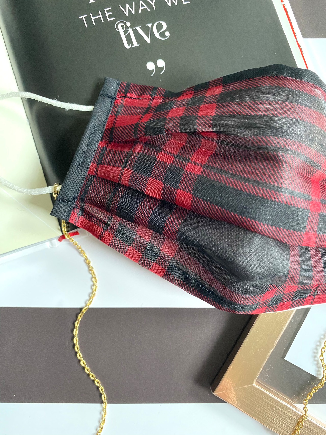 極薄のブラックオーガンジー生地にチェック柄のシルクオーガンジーを重ねています。