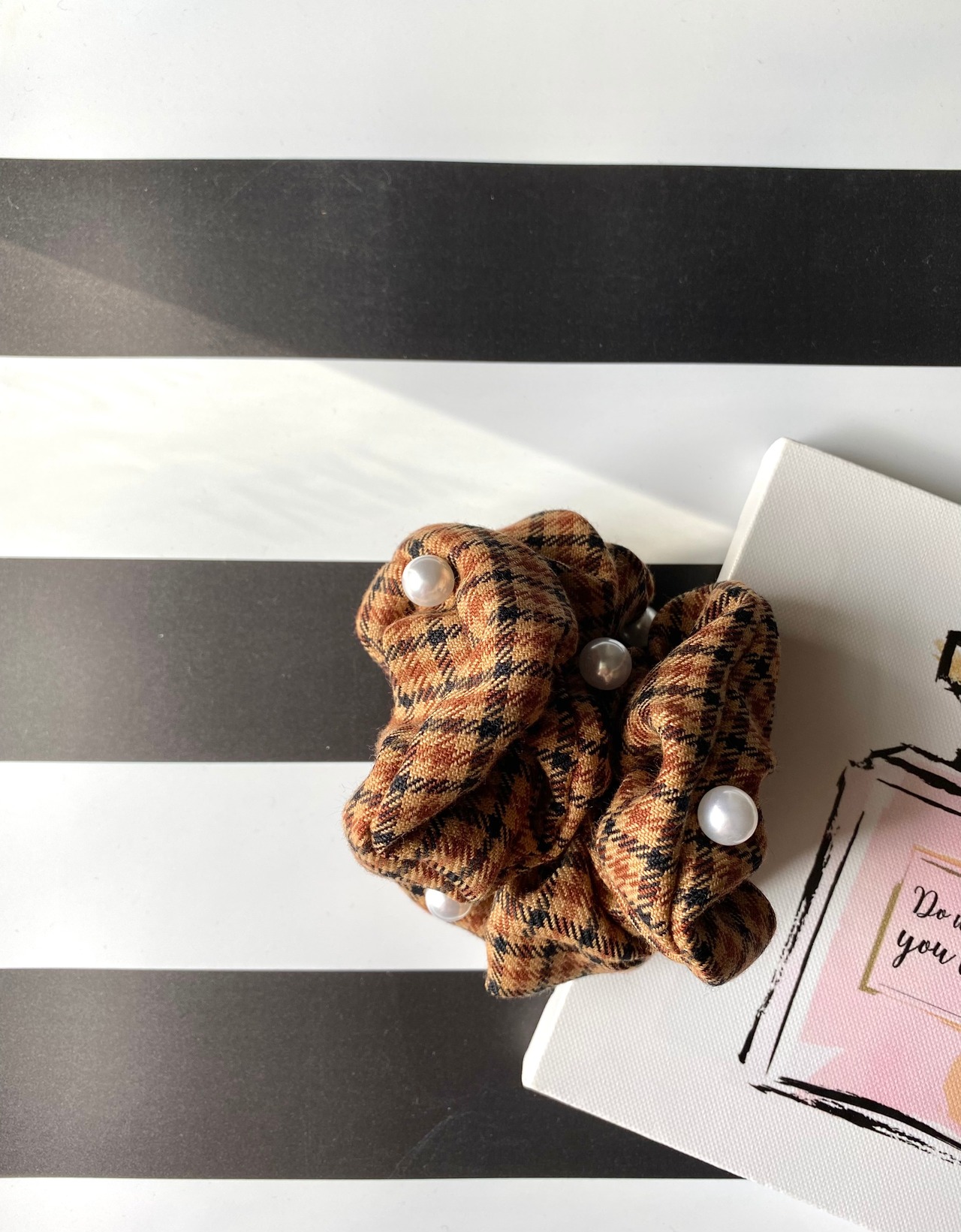 シュシュ(アーバンチェック×パール)