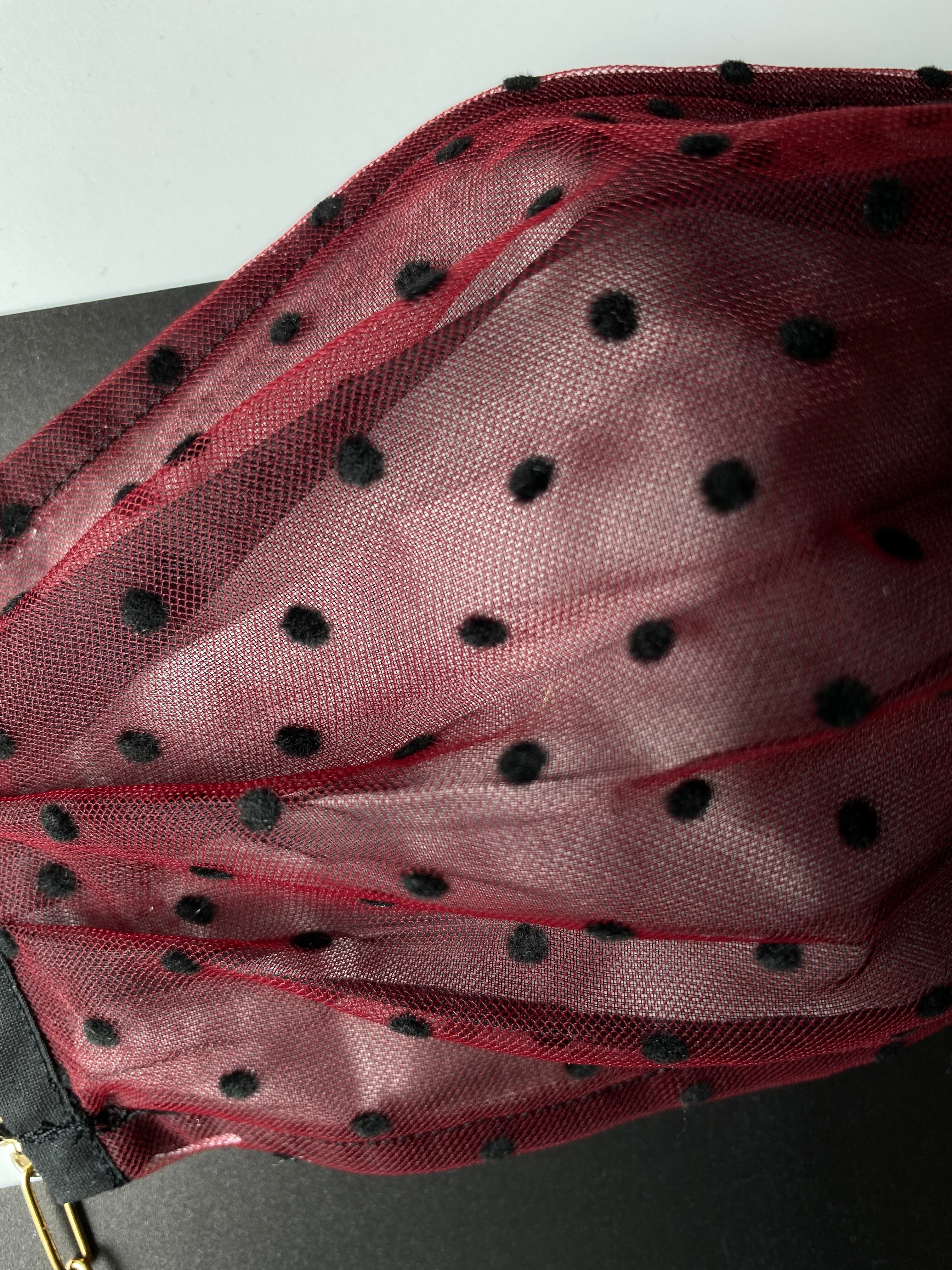 極薄のブラックオーガンジー生地にボルドーのチュールを重ねています。