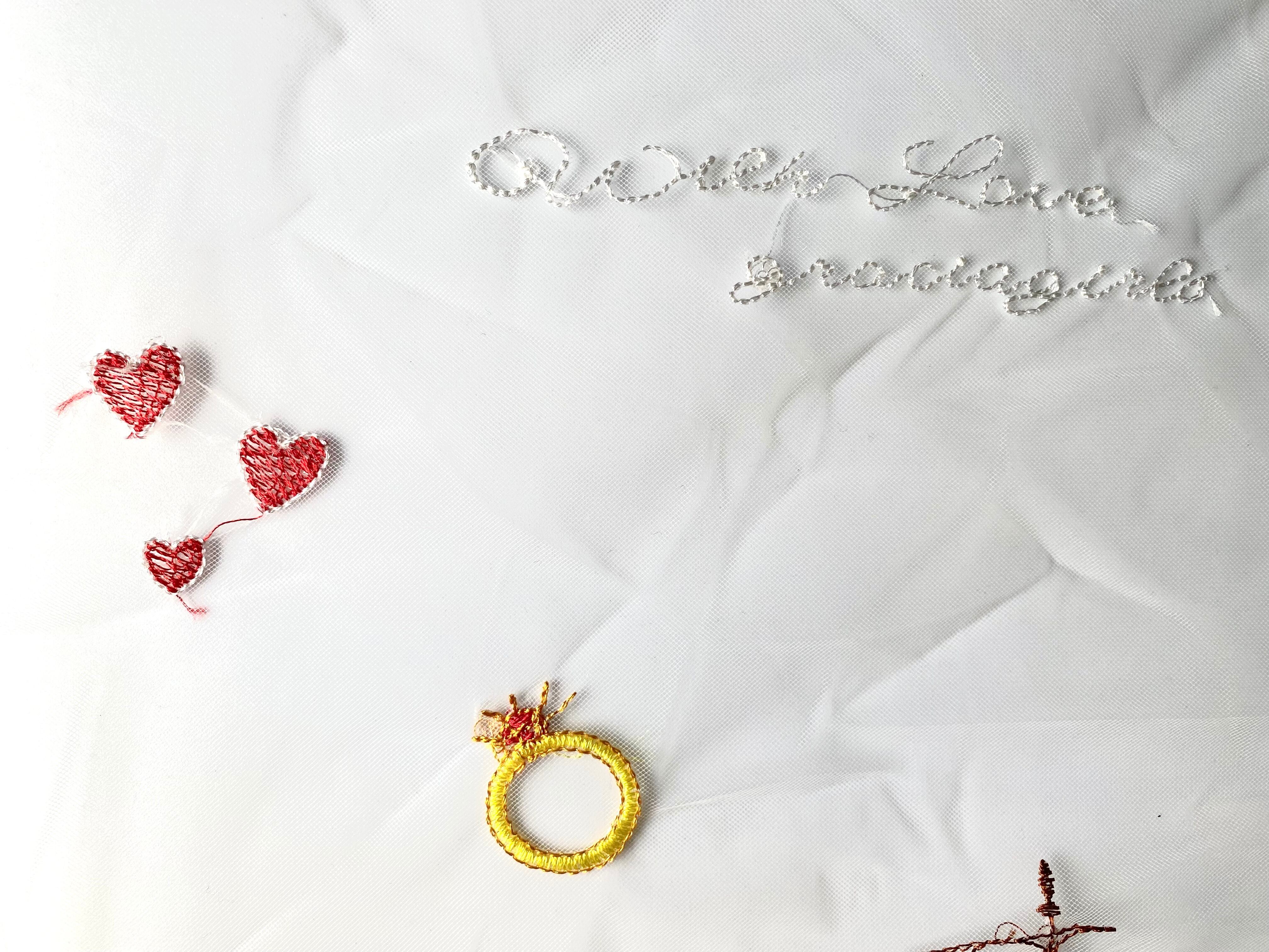 極薄のホワイトオーガンジー生地にホワイトのチュールを重ねています。