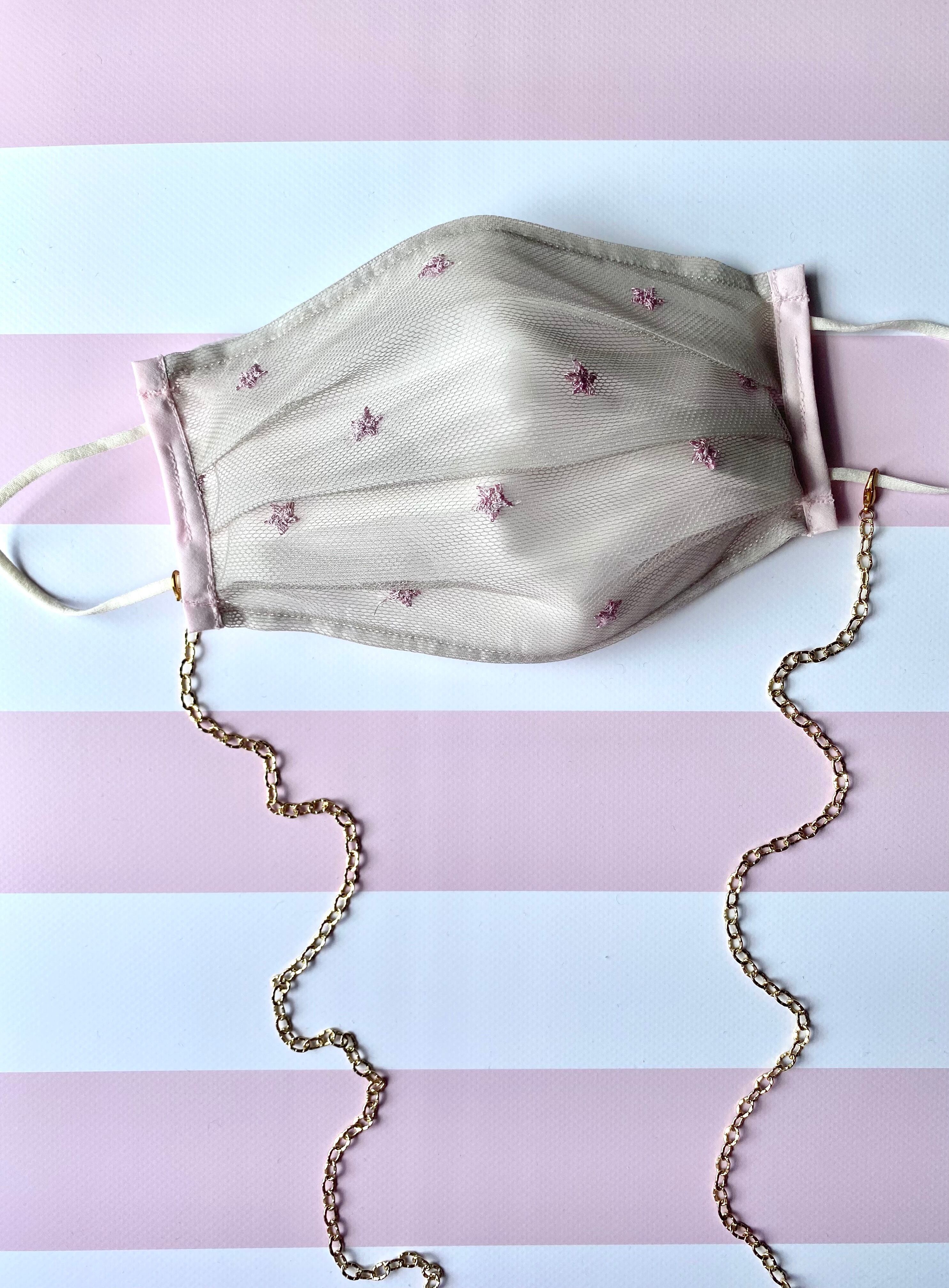 不織布マスクカバー(シアーピンク×刺繍スター)