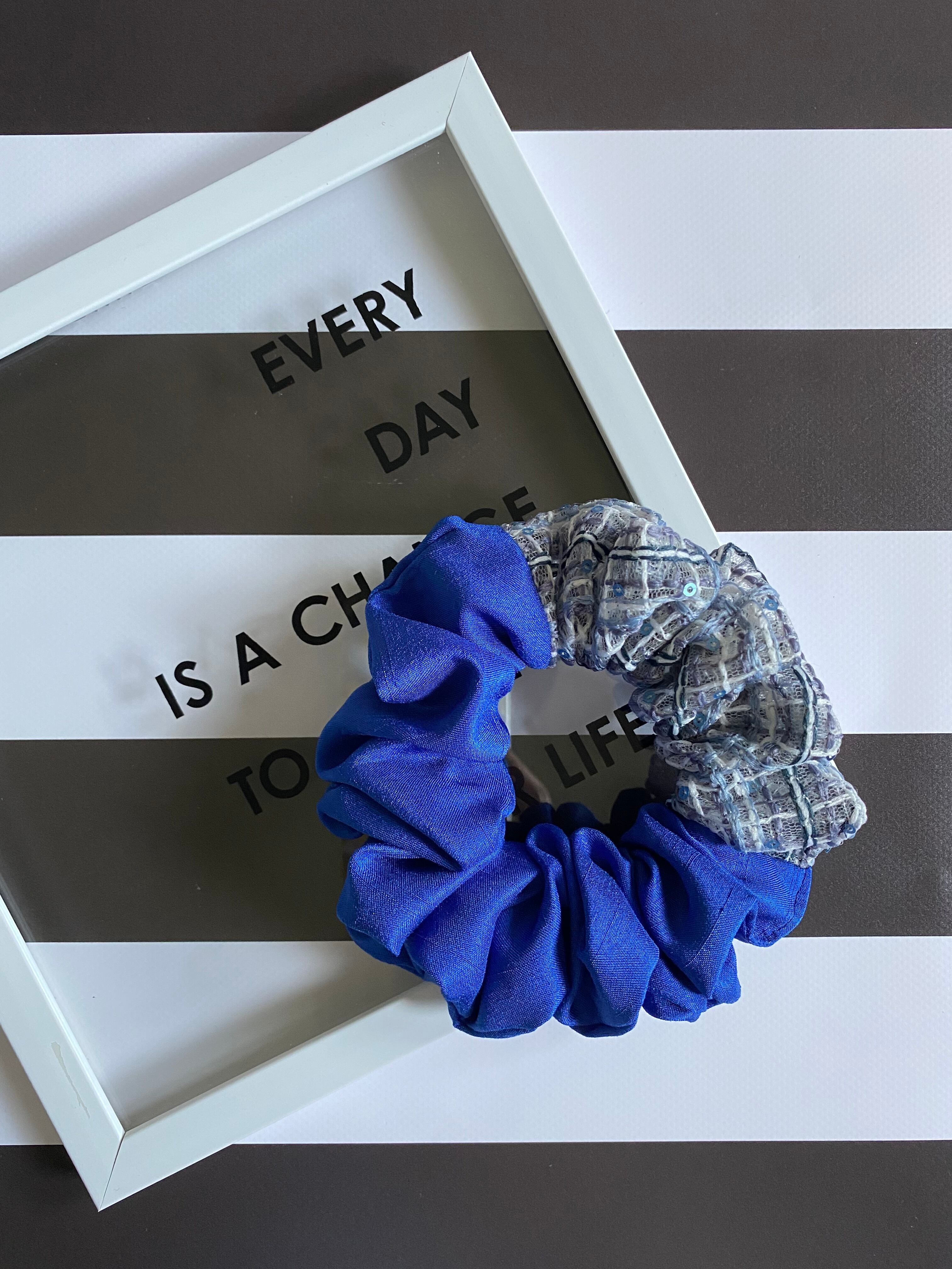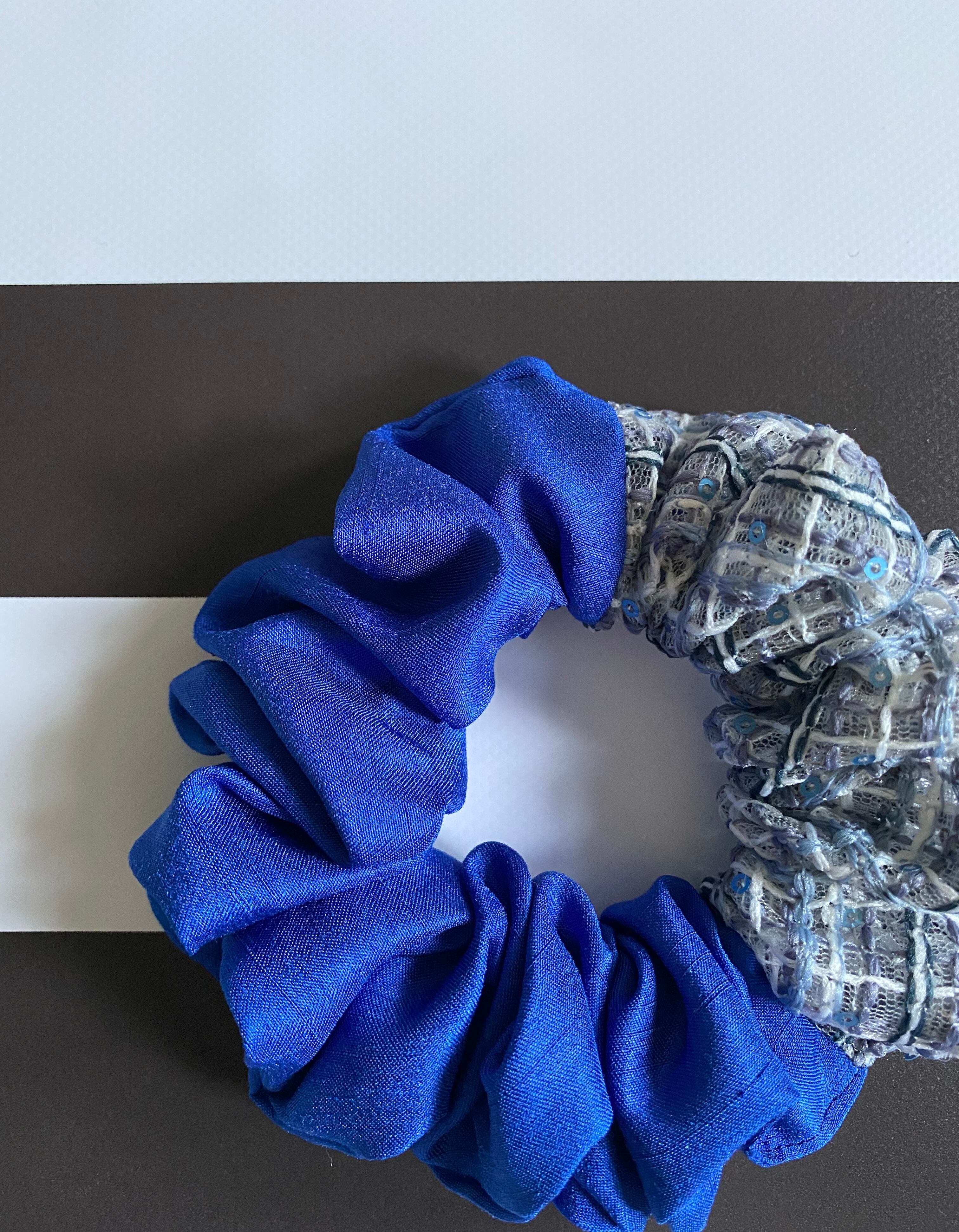 【Sale】シュシュ(ツイード糸刺繍メッシュ×ブルーシャンタン)