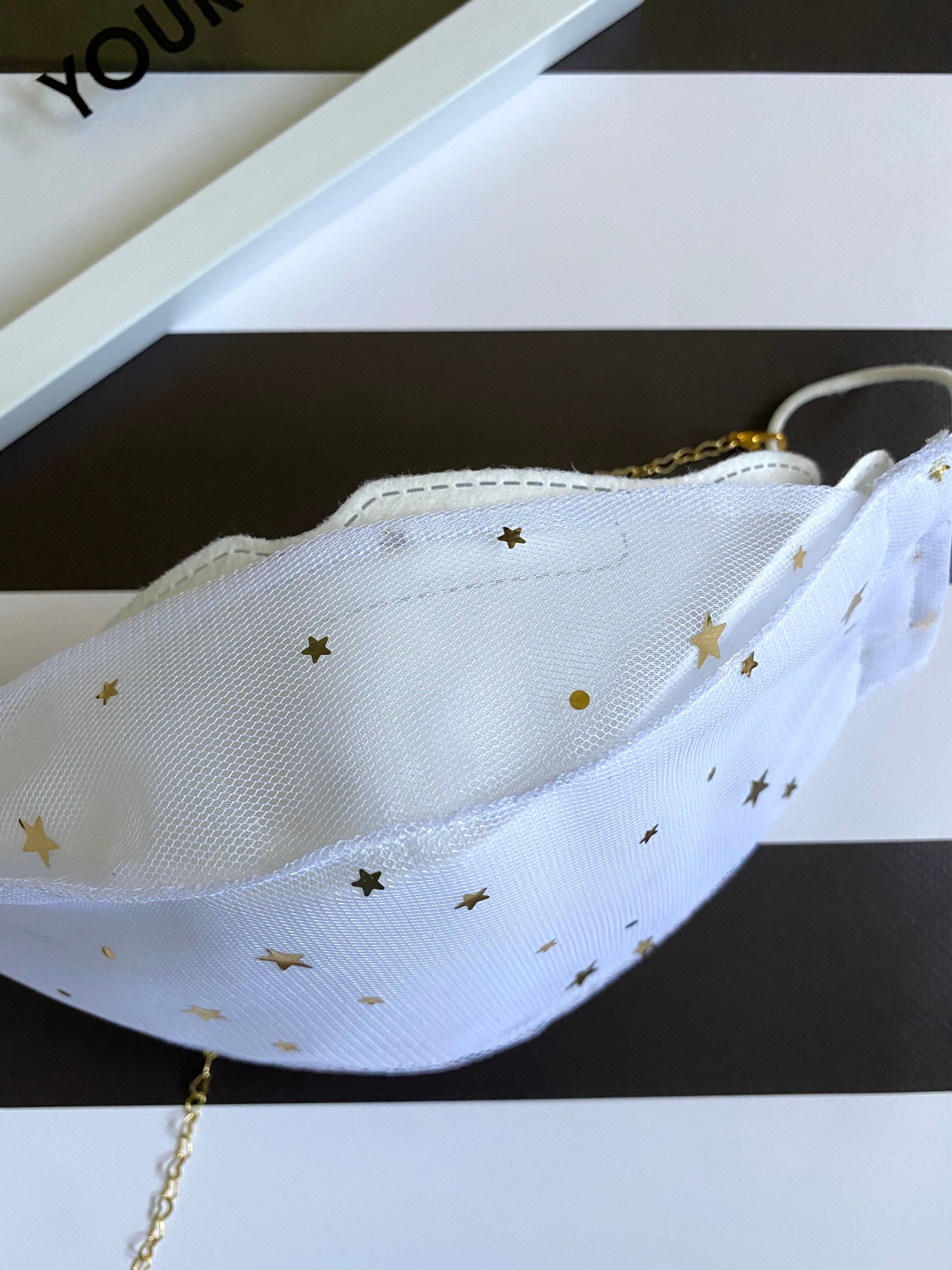 極薄のホワイトオーガンジー生地にチュールを重ねています。☆はゴールドです。