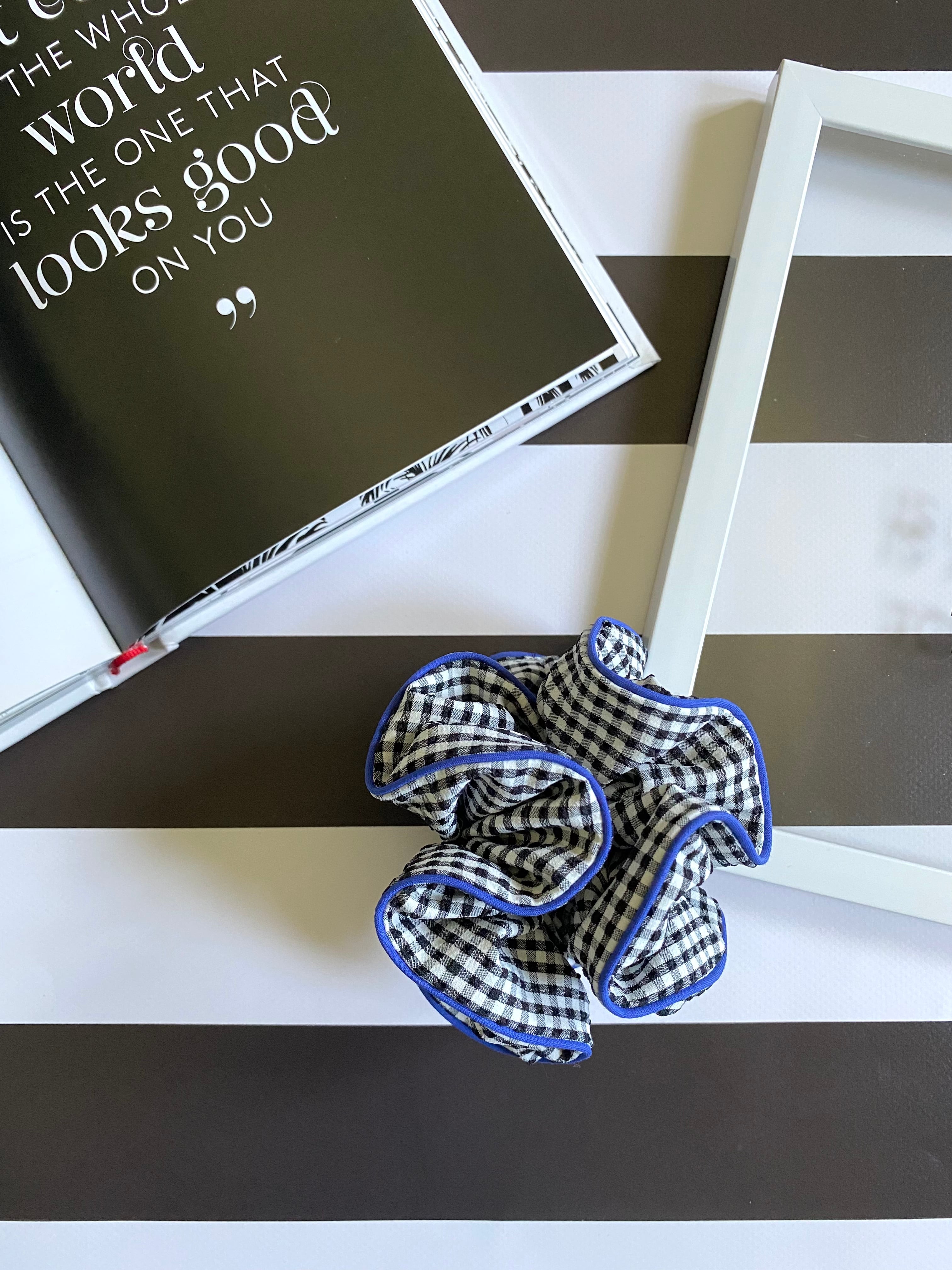 シュシュ(ブラックギンガムチェック×ブルー)