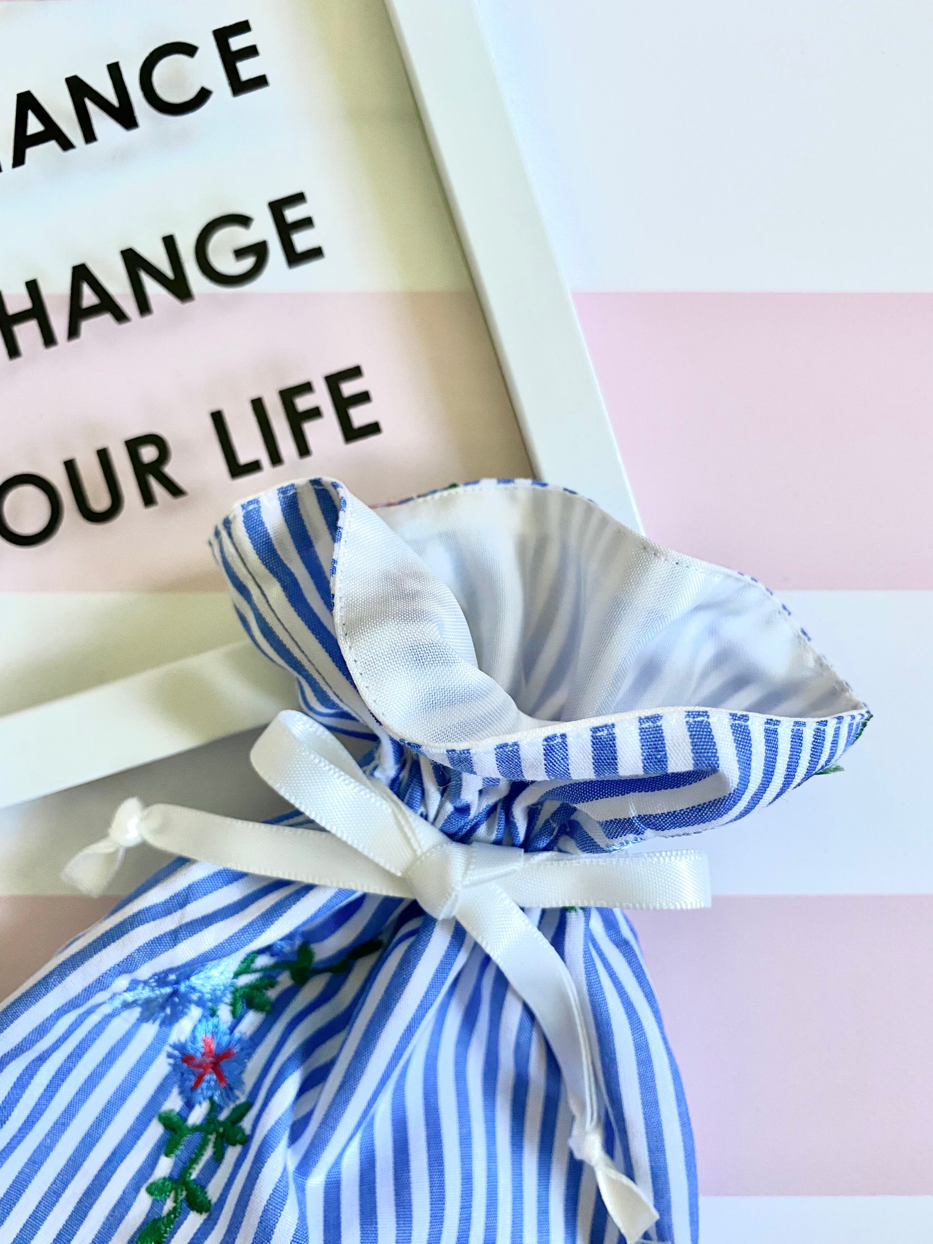 【Sale】コットン刺繍 巾着ポーチ(イタリアン刺繍)