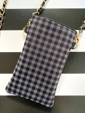 とても可愛いギンガムチェックがお洋服のアクセスになるスマホショルダーです。
