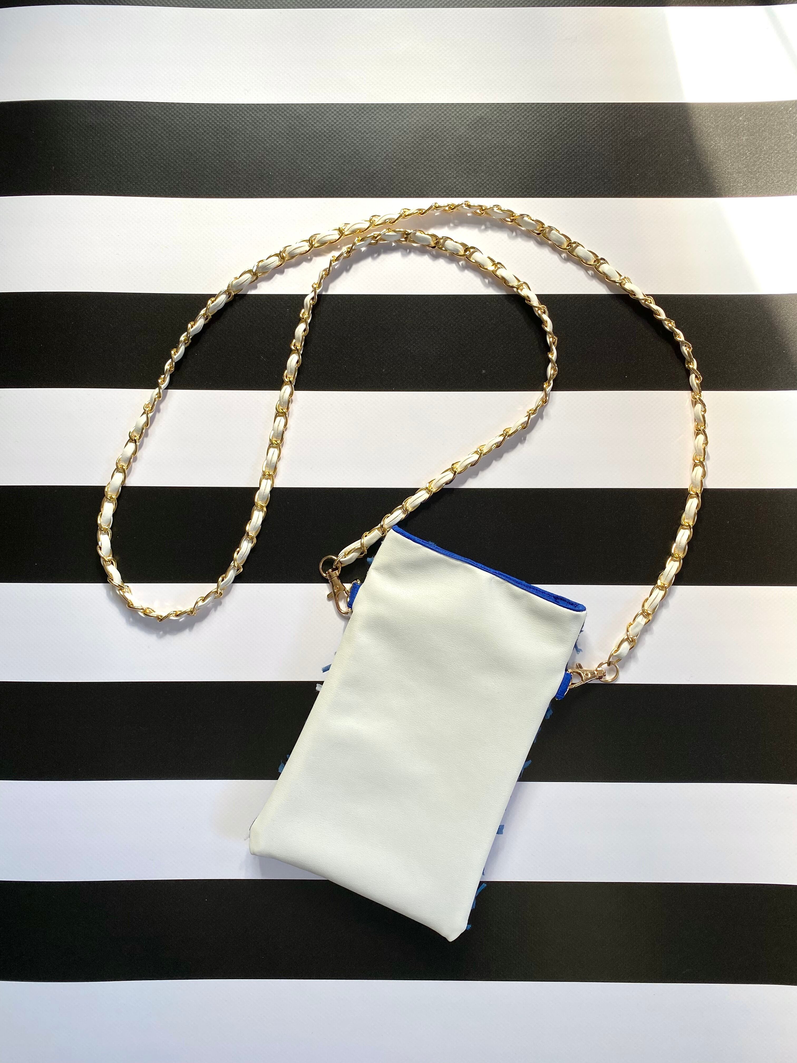 ブルーとホワイトの組み合わせがこれからの季節にぴったりな可愛いツイードのスマホショルダーです。