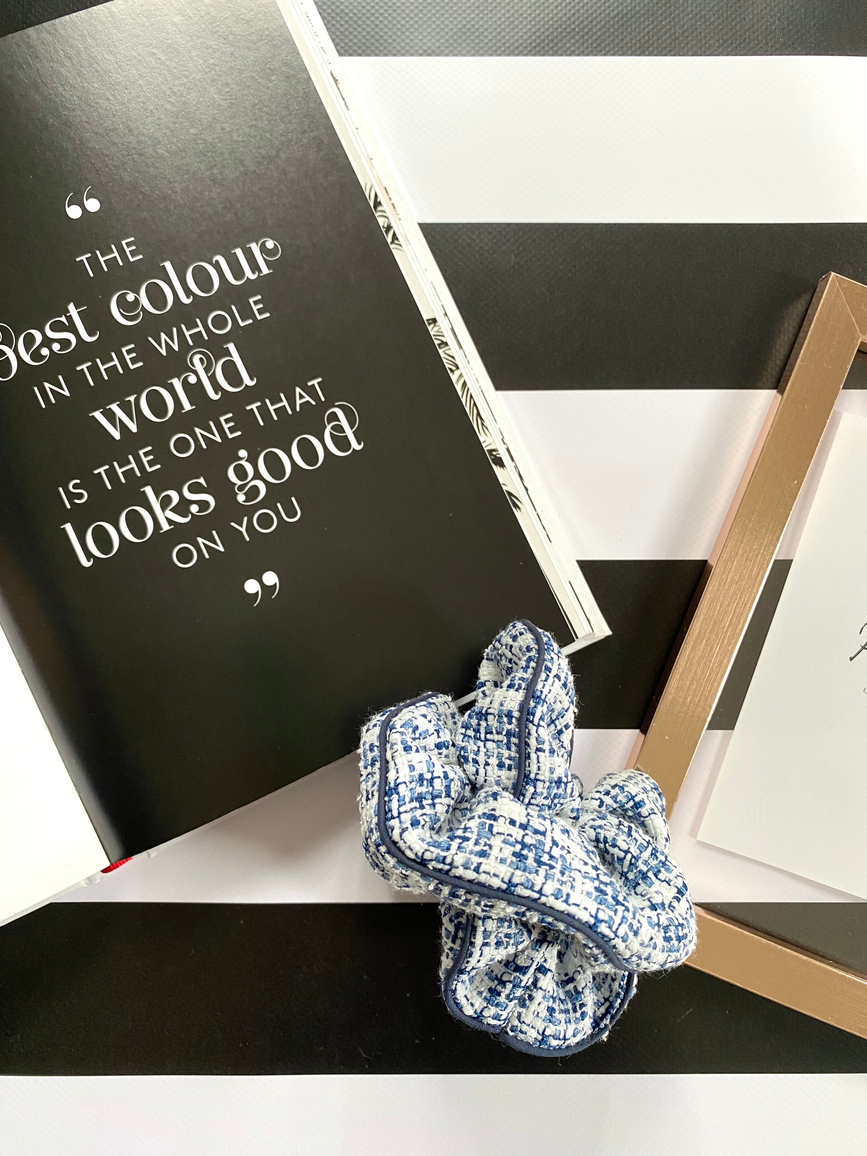ツイードシュシュ(ネイビー×ブルー)パールオプション