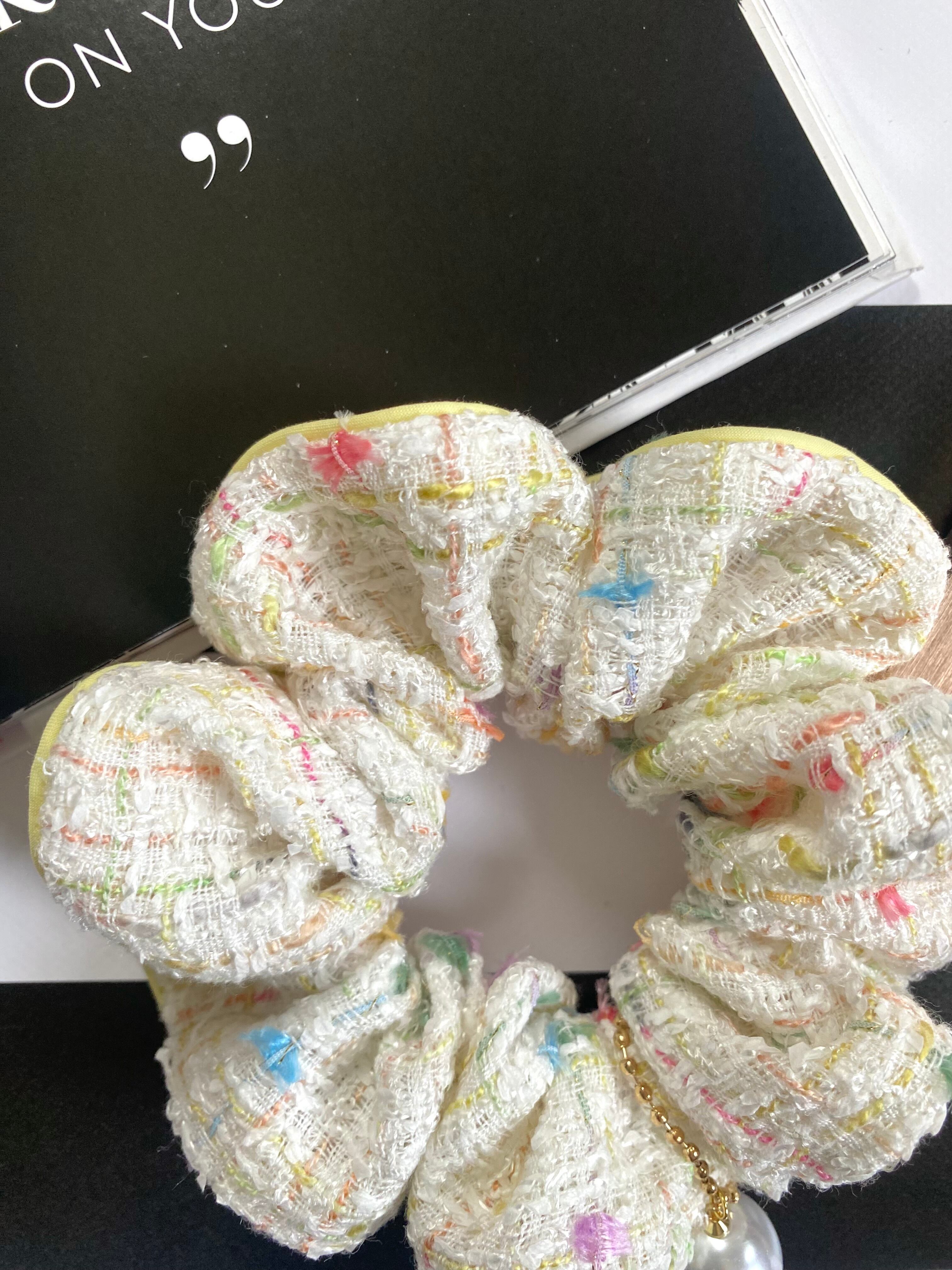 ツイードシュシュ(ホワイト×パステル)